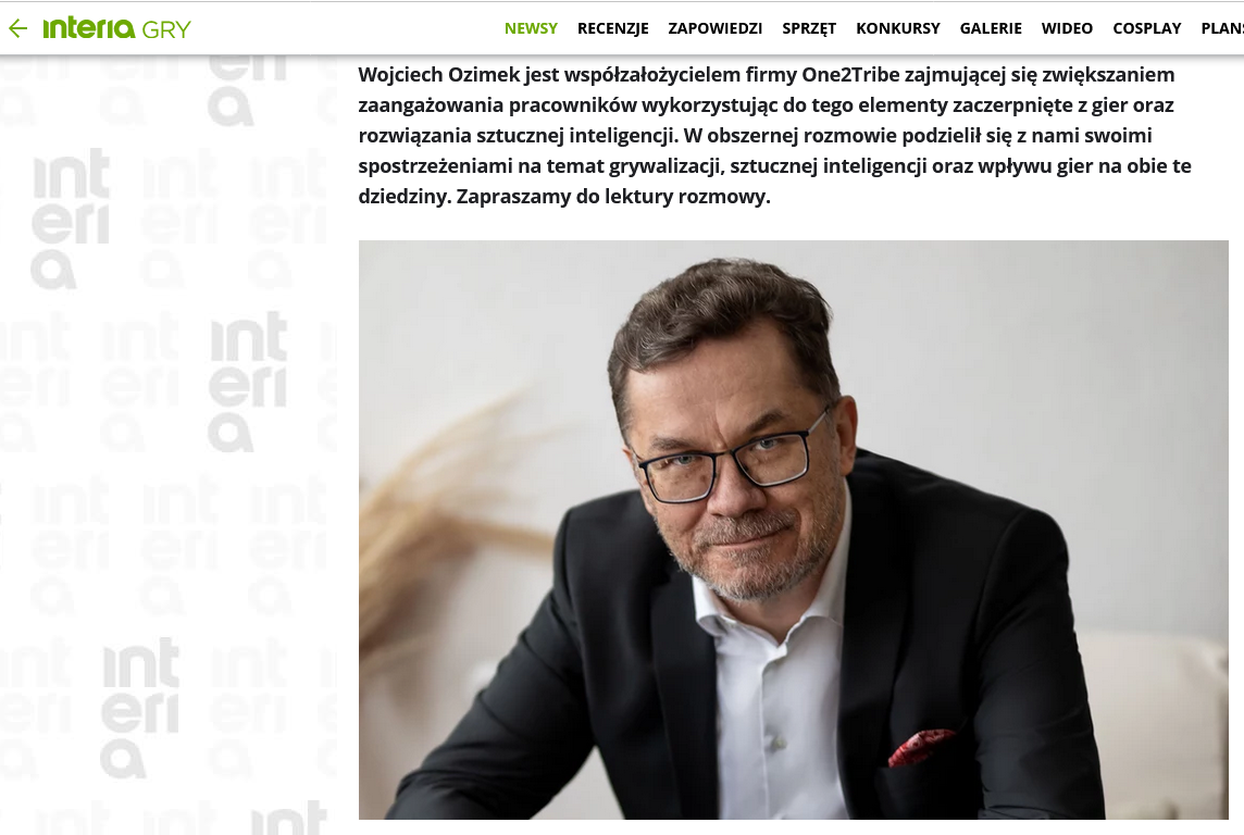 Zdjęcie CEO Wojciecha Ozimka z firmy ONE2TRIBE zostało opublikowane we wrześniu 2023 roku w INTERII GRY. Zdjęcie z sesji wykonanej na zlecenie AB CREATE w kwietniu 2023.