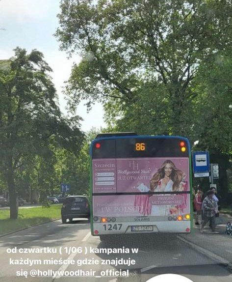 Zdjęcie Klaudii Duszyńskiej z HOLLYWOOD HAIR zostało wykorzystane jako reklama na autobusach w Warszawie, Szczecinie, Sopocie, Poznaniu, Wrocławiu i Katowicach przez miesiąc - czerwiec 2023 roku. Zdjęcie z sesji wykonanej na zlecenie AB CREATE w grudniu 2021.