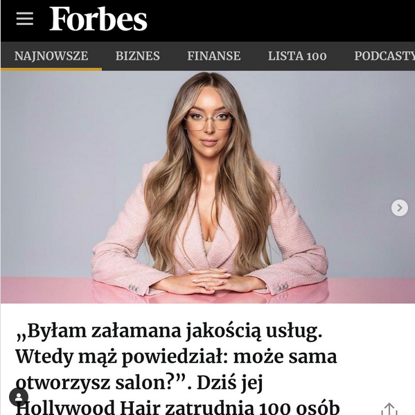 Zdjęcie Klaudii Duszyńskiej z HOLLYWOOD HAIR zostało opublikowane w listopadzie 2023 roku w magazynie FORBES. Sesja wykonana na zlecenie AB CREATE w kwietniu 2023.