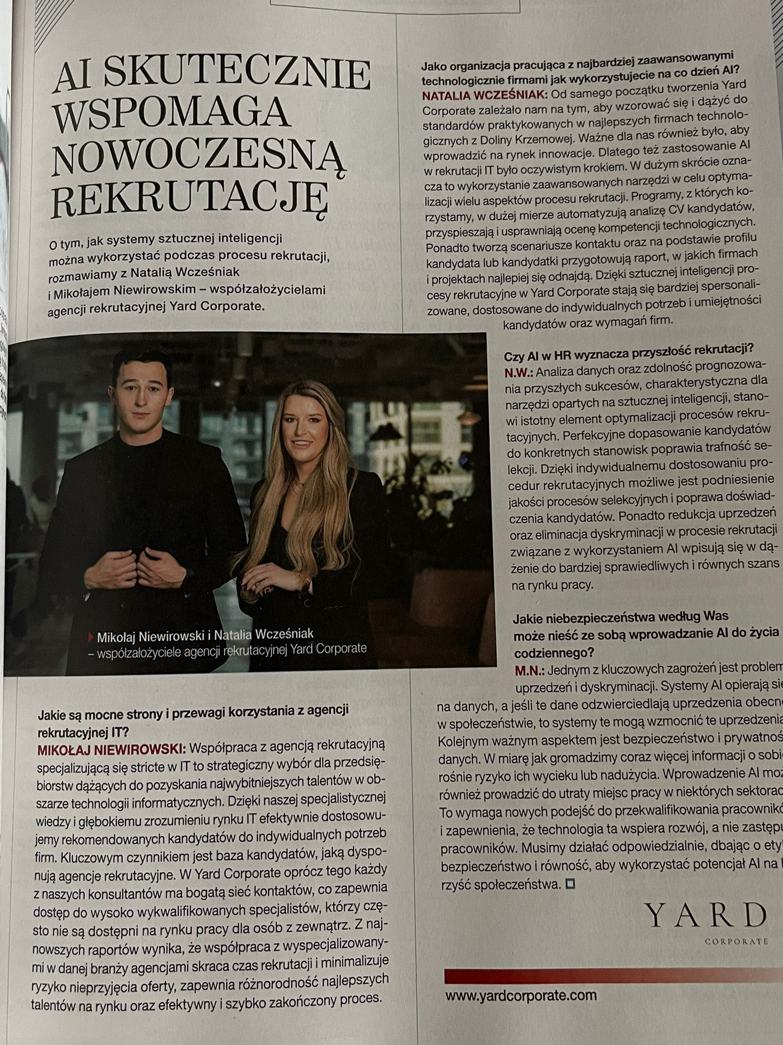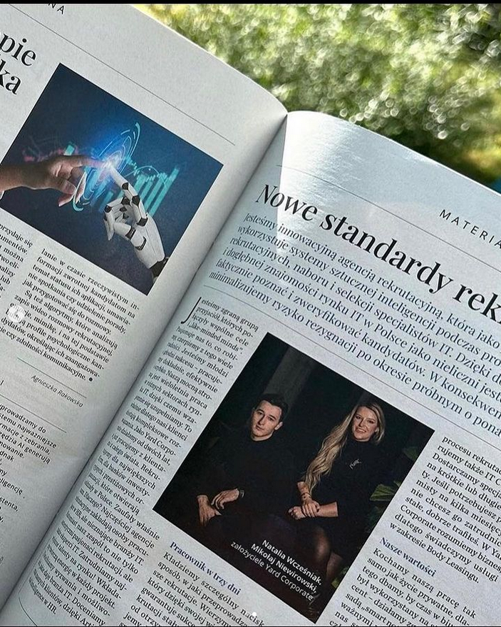 Zdjęcie CEO Natalii Wcześniak i Mikołaja Niewirowskiego z firmy YARD CORPORATE zostało opublikowane we wrześniu 2023 roku w NEWSWEEK. Zdjęcie z sesji wykonanej na zlecenie AB CREATE w styczniu 2023.